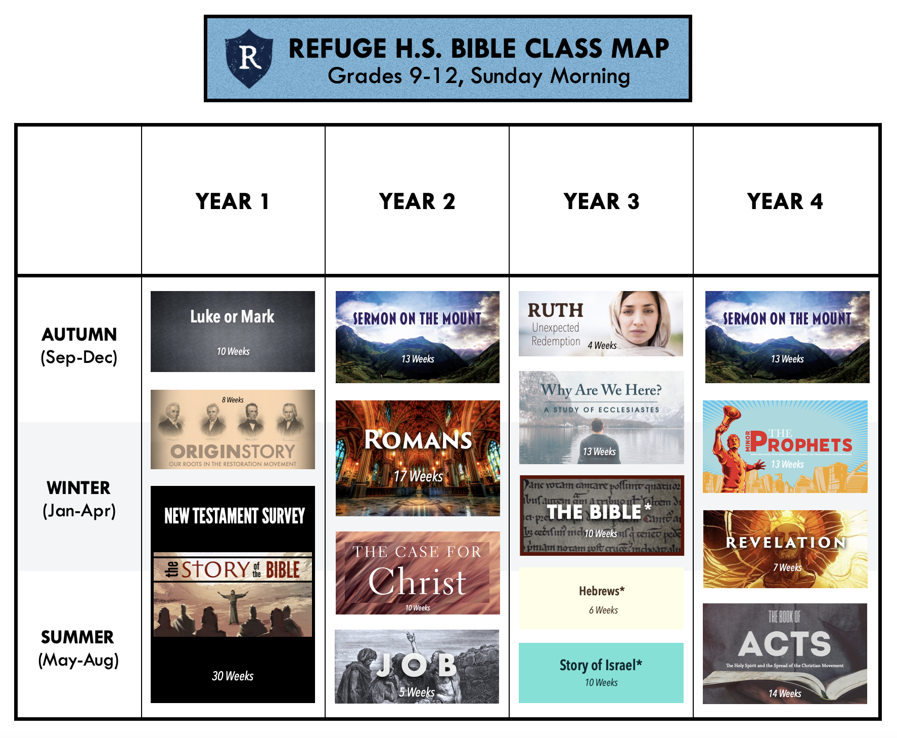 The Refuge Education Map outlines what we teach to our students before they graduate.
